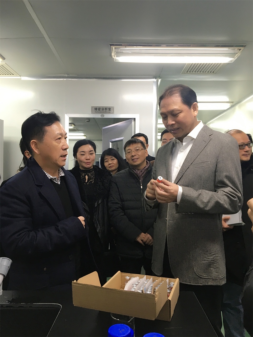 2017年12月26日下午,上海市宝山区人民政府区长、中共上海市宝山区委副书记范少军及工作组莅临上海AG尊龙凯时调研生产、项目建设及产品研发情况。上海市宝山区经济和信息化委员会主任夏永军、上海市宝山区罗店镇人民政府镇长申向军等一行陪同考察,AG尊龙凯时医药董事长兼总裁叶湘武先生携公司高层管理人员对宝山区区长范少军及其工作组的到来表示热烈欢迎。