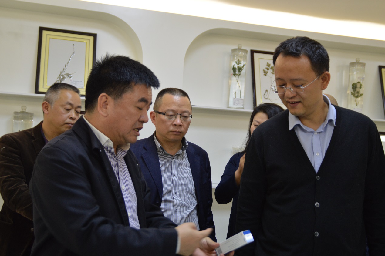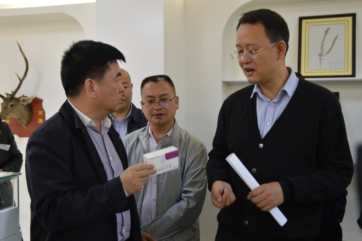 在展示厅中,县委书记孙华忠看到景诚制药生产等系列产品,听到关于景诚制药生产的“贵州三宝+”的介绍时,孙书记兴趣浓厚,感叹道“没想到修文县竟有企业能将贵州三宝做得如此优秀,虽然市面上见到的贵州三宝并不少,但包装如此精细,如此方便食用却是第一次见到。”
