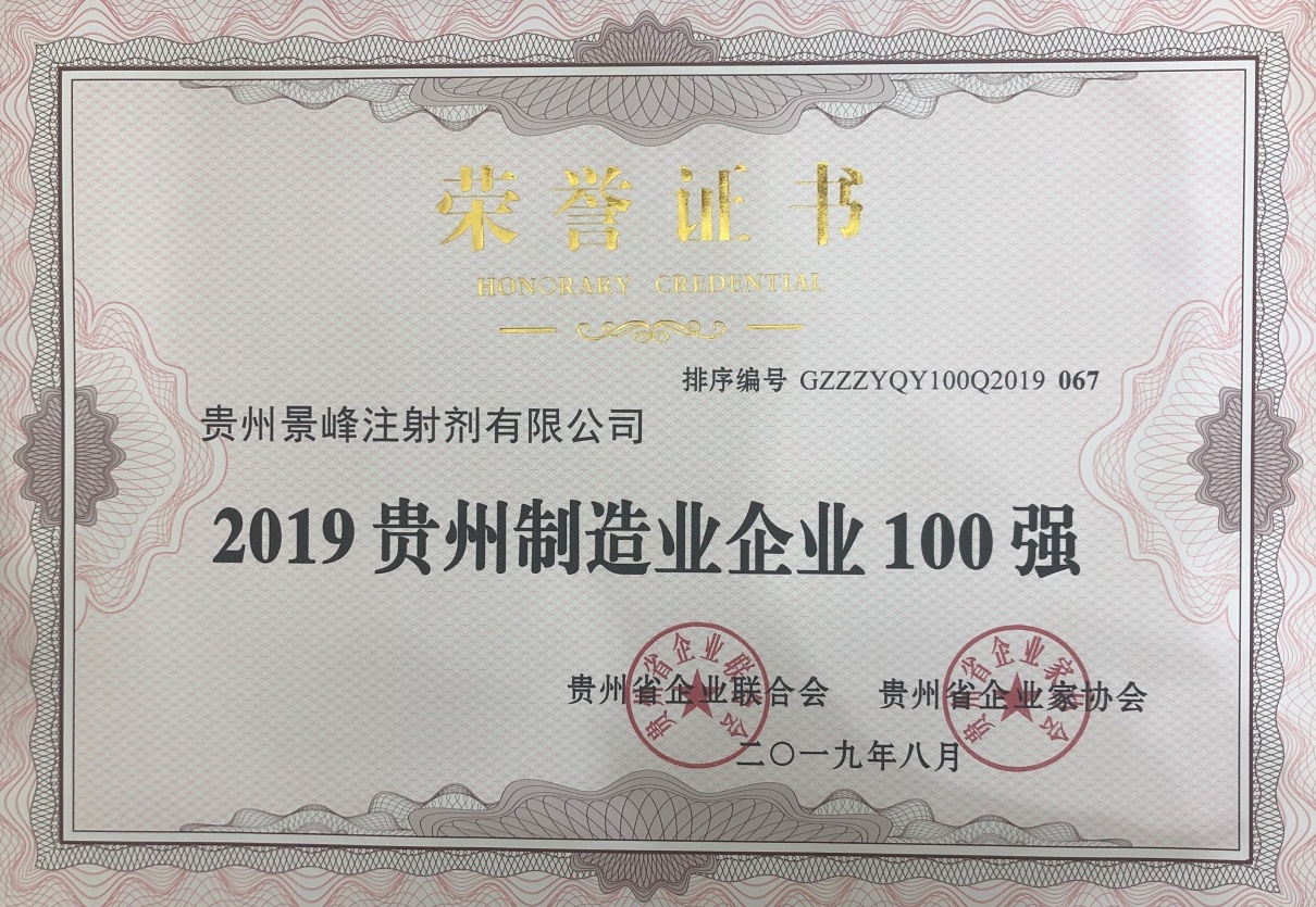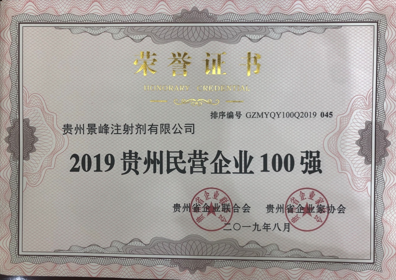 2019年9月6日,贵州省企业联合会、贵州省企业家协会在贵阳举行了贵州双百强企业高峰论坛并发布了2019贵州企业100强、2019贵州民营企业100强、2019贵州“成长之星”企业名单。贵州AG尊龙凯时注射剂有限公司荣登“2019贵州民营企业100强”、“2019贵州制造业企业100强”榜单。